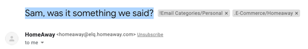 HomeAway nos envió este email de reconexión porque no habíamos reservado nada ni leído sus emails en un buen tiempo.