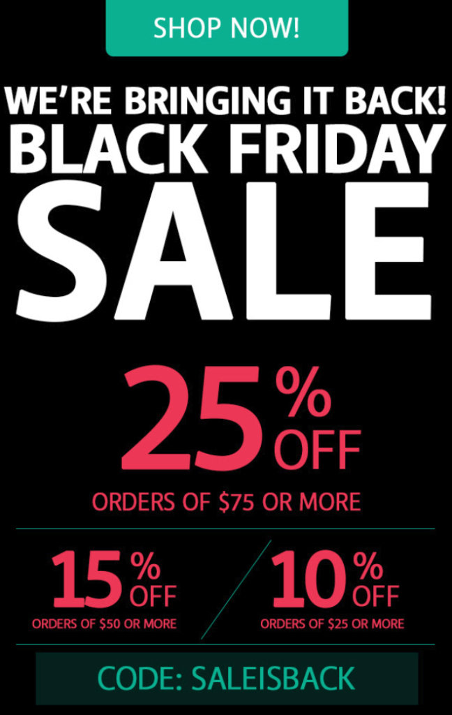 Eles trazem a Black Friday de volta e dão a entender que grandes ofertas aguardam seus clientes. Mesmo que os descontos da empresa não ultrapassem 25%, eles criam com sucesso uma percepção da Black Friday.