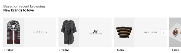 Em vez de me recomendar apenas os produtos semelhantes, a empresa me recomenda novas marcas para experimentar, com base em meu histórico de navegação recente.