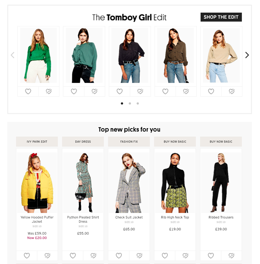 (Caso você esteja se perguntando, a Topshop utiliza uma ferramenta desenvolvida por terceiros, chamada Dressipi para montar a seleção.)