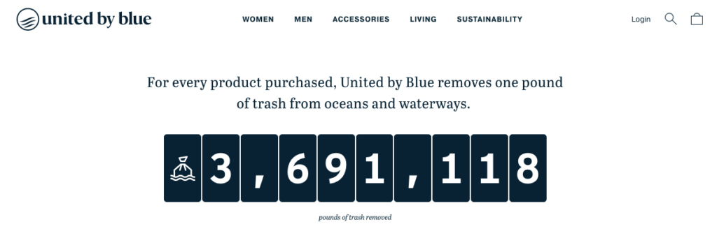 Notice how the company includes the reader in the conversation by focusing on the “we.” This way, United by Blue reminds you that your purchases directly fund these cleanups.